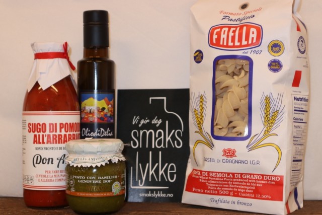 - Pesto alla genovese/Pesto Rosso 180 g. Anbefales brukt i pastasalat, i varm pasta, saus, dipp, på bruchetta osv.