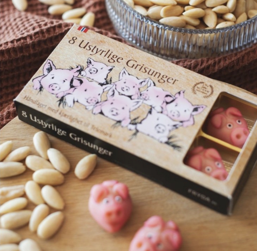 8 ustyrlige grisunger 120g 8 Ustyrlige grisunger fra Fryda Gård, tøylet inn i eske for frakt til nytt hjem. De er søte på alle måter og havner veldig fort i munnen. NOK179,00 inkl. mva. På lager Kjøp Del dette Produktinfo Fryda ..... er en liten marsipanfabrikk som lager håndlagde marsipanfigurer av nydelig, norsk kvalitetsmarsipan på ekte, tradisjonelt vis. Fryda startet opp i 2021, men folkene som står bak har over 3 generasjoner og 40 års erfaring i bransjen. Fryda brenner for å gi deg den gode smaksopplevelsen av kortreist mat og råvarer, og de smaker seg frem til det de mener er den deiligste oppskriften.