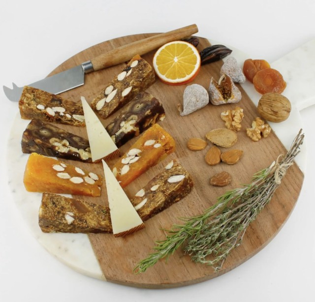 Fiken og appelsinkake med mandler halv 250g, Almondeli Finhakkede tørkede fiken tilsatt appelsin og en god dose med Almondelis Valencia mandler som balanserer sødmen og gir en fin teksturbrytning. Et perfekt tilbehør til ost. NOK89,00 inkl. mva. På lager Kjøp Del dette Produktinfo 250 gram fikenkake er rikelig med tilbehør til ostebordet. Spiser du ikke opp alt er det bare å pakke det godt inn i clingfilm og legge det i kjøleskapet til neste ostefest.