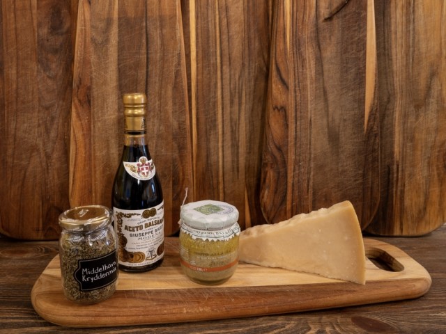 Smakslykkes smaksløft For deg som vil løfte smaken et hakk. Denne pakken samler intense, aromatiske favoritter fra Middelhavet – perfekt for å gi både enkle og mer gjennomførte retter en dypere og mer raffinert karakter. NOK717,00 inkl. mva. På lager Send som gaveSend som gave +15,00Nei Kjøp Del dette Produktinfo Inneholder: Pesto alla Salvia 180g, Anfosso En kraftigere og mer aromatisk smak enn klassisk pesto. Den lages med salvieblader, valnøtter, hvitløk, parmesan og god olivenolje. Balsamico di Modena il classico giusti 2 medajer (tidlig 8 års) En av de mest anvendelige og mest solgte eddikene fra Giusti. Laget på redusert druemost og vineddik. Den har en god viskositet med delikate hint av sødme og moden frukt i kombinasjon med lakris og sort pepper. Middelhavs Kryddermix, 35g En sammensetning av de mest populære og smakfulle krydderne fra middelhavskjøkkenet. En perfekt blanding til marinering av alle typer kjøtt, kylling og fisk. Parmigiano Reggiano 24 måneder (250g) En ung og elegant parmesan med en perfekt balanse mellom kremet konsistens og frisk, nøtteaktig smak. Modnet i 24 måneder for en fyldig, men mild karakter – perfekt til matlaging, antipasti, salater og som et delikat snack.