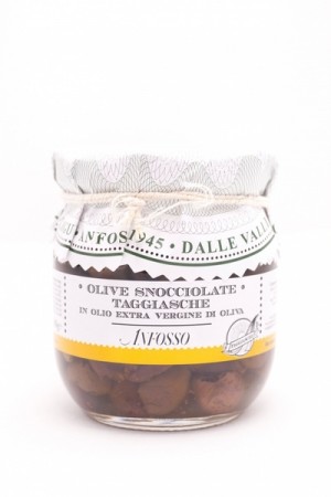Taggiasche oliven uten stein på Anfosso´s egen extra virgin olivenolje.