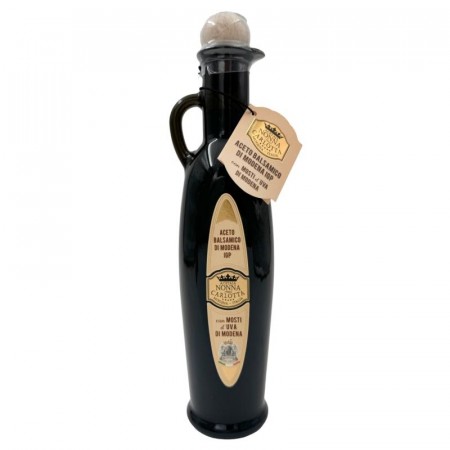 Eksepsjonelt rik og intens smak, tyktflytende, preget av sterk duft og delikat aroma. Aceto Balsamico fra Carlotta i Modena, lagret i 5 år. Vakker flaske og deilig kvalitet. Selvskrevet til buffeten Unik rik og intens smak, tykkflytende, kraftig aroma