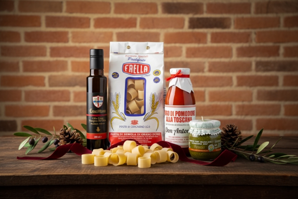 Smakslykkes Pastapakke Gi bort smaken av ekte italiensk lidenskap - en gave som alltid faller i smak! NOK661,00 inkl. mva. På lager Kjøp Del dette Produktinfo Faella pasta 500 g. IGP-merket, sikrer at pastaen er produsert i henhold til strenge kvalitetsstandarder i sitt opprinnelsesområde. Det er et flott valg for dem som ønsker å oppleve autentisk italiensk pasta! (Assortert utvalg av ulike klassiske pastavarianter som linguine, rigatoni, paccheri, penne og fusilloni) Don antonio pastasaus 500ml. Kun naturlige ingredienser og smaker! Familieoppskrifter fra Casina Rossa, som har foredlet sine avlinger gjennom generasjoner. (Assortert utvalg av klassiske italienske tomatsauser som basilico, bolognese, arrabbiata og napoletana) Pesto alla genovese/Pesto Rosso 180 g. Anbefales brukt i pastasalat, i varm pasta, saus, dipp, på bruchetta osv. Olivenolje 250 ml, Smakslykke AS. Tenuta Rocchetta har laget olivenolje på Sicilia siden 1600-tallet – håndhøstet, kaldpresset og ufiltrert for ekte smak av Middelhavet. Deres prisvinnende ekstra virgin olivenoljer av Nocellara del Belice kjennetegnes av frisk grønn farge, fruktig aroma og en harmonisk, lett krydret avslutning. Eksklusivt hos Smakslykkei Norge! (Assortert utvalg av Tenuta Rocchetta Nuciddara, Crescimanno Nuciddara, Olio di Delia Blend og TryOne Blend) Følger med silkepapir, coellefan, smakslykke klistremerke og gavebånd.