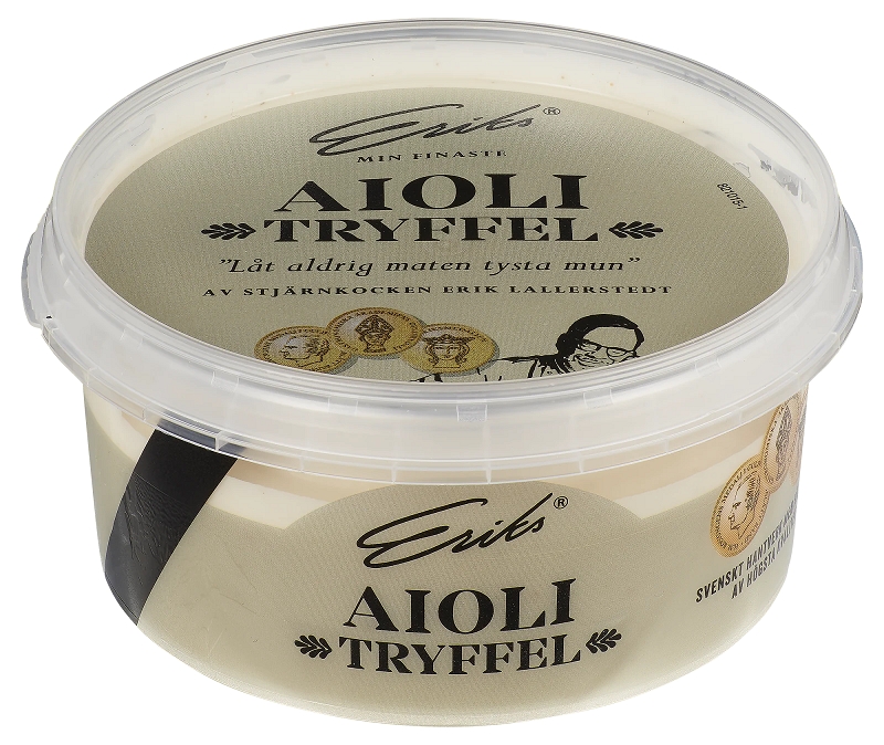 Eriks trøffelaioli 170 ml Kremet majonesbasert kaldsaus med hvitløk og trøffel. NOK59,00 inkl. mva. På lager Kjøp Del dette Produktinfo Sausen har en kremet konsistens og en rund, balansert smak av trøffel og hvitløk. Trøffelaioli passer utmerket til fisk, grillede grønnsaker og til alle kjøttretter. Fantastisk som dip til poteter og rotfrukter. Kan nytes både varm og kald. Prøv dem som dressing på burger eller i en sandwich for en ekstra fancy godbit. Erik Lallerstedt er en av Sveriges mest kjente kokker, og han eier flere restauranter som har blitt tildelt diverse utmerkelser, blant annet en stjerne fra Michelinguiden. 'Eriks sauser' er hans egne oppskrifter som han til daglig bruker i sine restauranter, og som nå er tilgjengelig for alle. Sausene produseres av naturlige råvarer av høyeste kvalitet.
